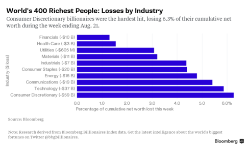The world’s 400 richest people lost $182 billion this week from their collective fortunes as weak manufacturing data from China and a rout in commodities sent global markets plunging.