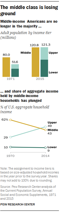 The Pew Research Center’s recent report No longer the majority and falling behind financially made a media splash, as it reported that less than 50% of adults are members of the Great American Middle Class.